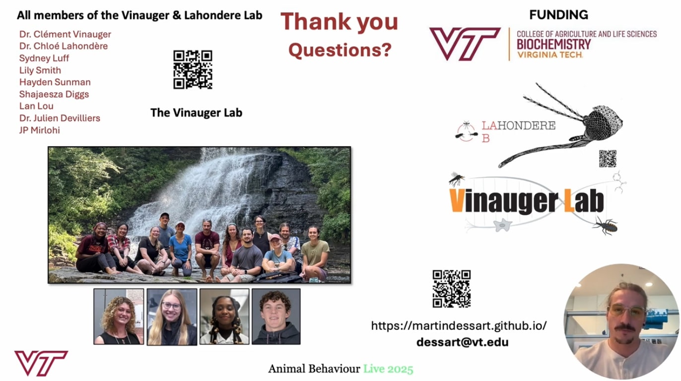 In November 2025, I had the opportunity to present our ongoing research at the Vinauger Lab on the effect of light shifts on mosquito synchronization at the Animal Behaviour Live online conference. This international organization host scientific conferences with a fair representation of self-assessed minorities, geographical distribution of speakers and democratically decision-making.